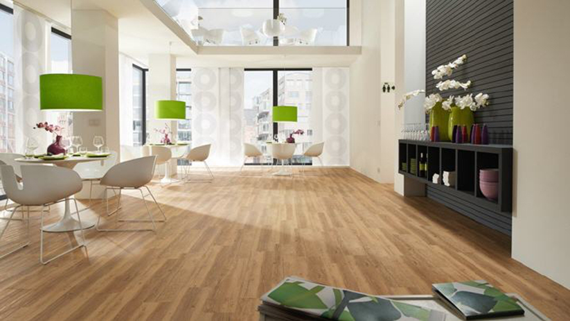 Neben den herausragenden, strapazierfähigen und pflegeleichten Materialeigenschaften, überzeugen vor allem die Designvielfalt und die fein modulierte Farbabstimmung der Designbeläge. Die Holzdekore zeigen eine täuschend echte Maserung, die von fein gezeichneten Spielarten bis zu rustikalen Varianten mit "rauer" oder verwüsteter" Optik reichen. Damit das richtige Dessin für jeden Einrichtungsstil zur Wahl steht, gehören neben den Klassikern Pinie, Esche und Eiche verschiedenen Typs auch extravagante Hölzer wie Palisander oder Teak zum Programm. Ergänzt wird das Dekor-Angebot durch Steinvarianten in Sandstein-, Marmor- und ausgewählt schönen Beton-Optiken. Für maximale Flexibilität sorgt die große Formatvielfalt von Designbelägen, mit der kleine Zimmer ebenso kreativ gestaltet werden können wie große Räume. Verschiedene Nutzschichten befinden sich im Portfolio, die auf unterschiedliche Anforderungsprofile abgestimmt sind – von der moderaten Beanspruchung in privaten Räumen bis zur extremen Belastung im hoch frequentierten Objektbereich. Dekore sind auch als klebstofffreie Klick-Variante erhältlich, die überall dort eingesetzt werden kann, wo Flexibilität gefragt ist oder der Unterboden intakt bleiben soll.