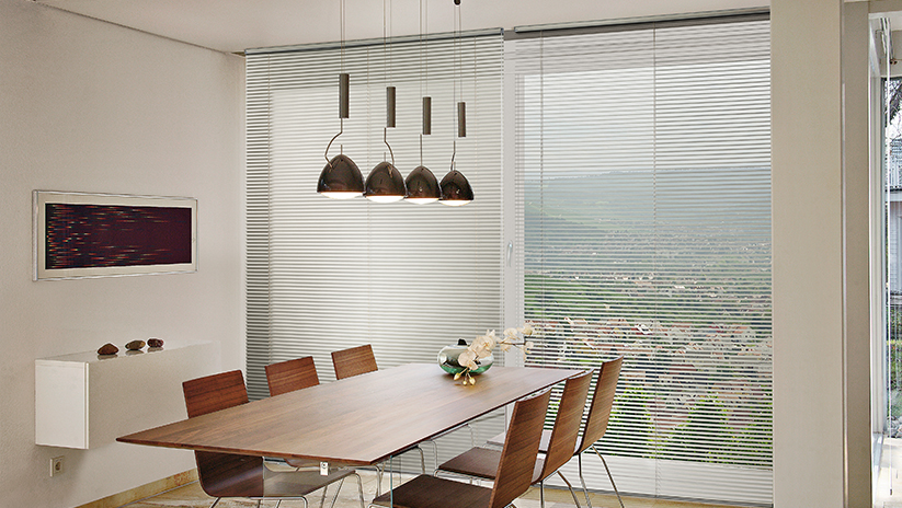 Als Klassiker im Sonnenschutzbereich haben Horizontal-Jalousien viele Eigenschaften: sie spenden Schatten, steuern den Lichteinfall, ermöglichen die Sicht nach draußen, gewähren Sichtschutz, sind filigran in der Technik und vermitteln eine sachlich, leichte Stimmung im Raum. Besonders bei Bildschirmarbeitsplätzen kann eine blendfreie Ausleuchtung geschaffen werden, die sich positiv auf Motivation und Leistung der Menschen auswirkt. Ein herausragendes Modell, das innovative Maßstäbe setzt, ist die Horizontal-Jalousie TwinLine. Frei verschiebbar von oben oder unten kann der Behang in jede gewünschte Position im Fenster positioniert und zusätzlich der Lamellenwendewinkel individuell eingestellt werden. Die Montage erfolgt in die Glasleiste, damit die Funktion von Dreh- und Kippfenstern uneingeschränkt erhalten bleibt. Mit hochwertigen Materialien, neuen Haptiken, aktuellen Farben und einer durchdachten Technik verbinden Horizontal-Jalousien Design, Form und Funktion für höchste Ansprüche im Arbeitsalltag.