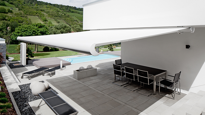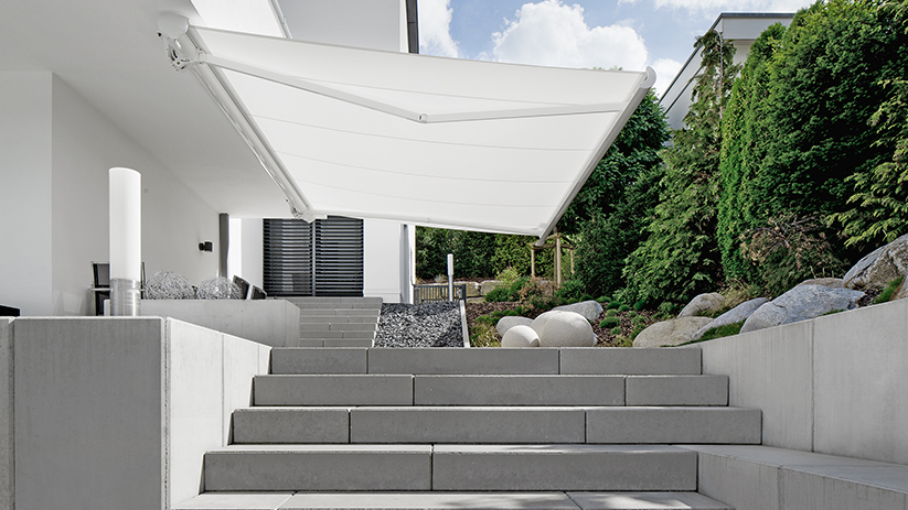 Unsere Markisen verleihen Terrasse und Balkon einen ganz besonderen Flair. Die vielseitigen Funktionsvarianten gewährleisten die gewünschte Sonnenlichtregulierung und ermöglichen einen zuverlässigen, flexiblen Sicht- und Sonnenschutz. Starke UV-Strahlung durch direktes Sonnenlicht ist die Hauptursache für Hauterkrankungen.Unter einer Markise können Sie sich je nach Hauttyp und ausgewählter Stofffarbe bis zu 80 Mal länger im Freien aufhalten. Sie erhalten von uns Markisen in hochwertiger Qualität und einwandfreier Verarbeitung. Außerdem besitzen sämtliche Markisen des CE-Zeichen und entsprechen somit der gültigen DIN-Norm EN 13561 mit Windwiderstandsklasse 2. Durch die mitgelieferte Handkurbel wird die Markise problemlos aus- bzw. eingefahren. Für eine komfortablere Bedienung stehen zwei verschiedene Elektroantriebe zur Wahl. Egal ob Standard- oder Funkmotor, beide Varianten bieten durch zusätzliche Steuergeräte (z.B. Wind- und Sonnenwächter) auch eine automatische Funktion.