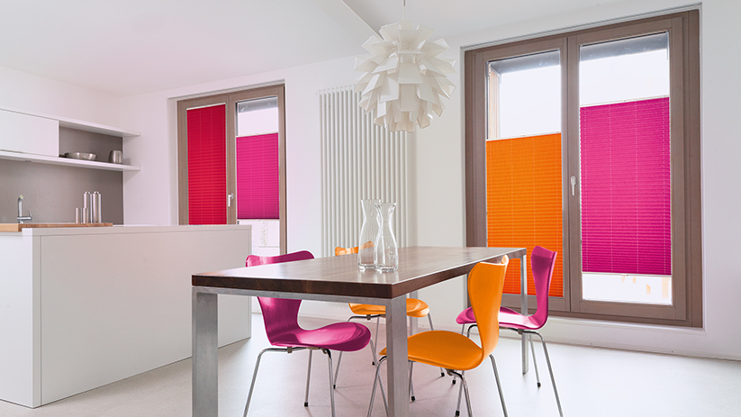 Für außergewöhnliche Fensterformen und Dachfenster bieten Plissee-Vorhänge die maßgeschneiderte Lösung, da sie sich überall perfekt anpassen. Dabei tritt die Plissee-Vorhang-Technik gekonnt in den Hintergrund und unterstreicht die optische Wirkung des Behangs. Neben freihängenden Anlagen, die vor dem Fenster montiert die gesamte Fensterfront verschönern, gibt es auch eine gespannte Anlage, deren Einbau direkt in die Glasleiste erfolgt, um die Funktion von z.B. Dreh- oder Kippfenstern uneingeschränkt zu ermöglichen. Die perfekte Technik des gespannten, frei verschiebbaren Plissee-Vorhangs sticht dabei besonders hervor. Der Behang lässt sich von oben oder unten individuell einstellen und ist immer dort, wo Sie ihn gerade benötigen. Die Plissee-Vorhang-Stoffqualitäten überzeugen durch ihre Leistungsvielfalt und erfüllen beispielhaft, was moderne Bildschirmarbeitsplätze und Arbeitswelten fordern.