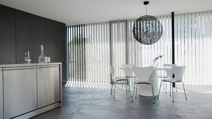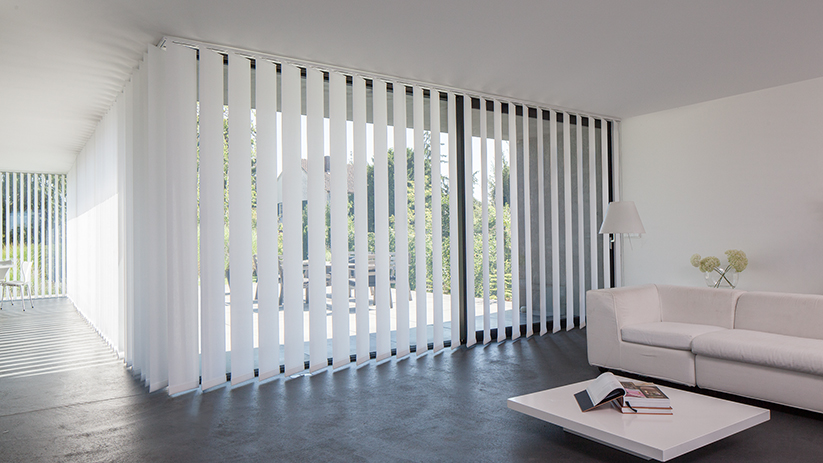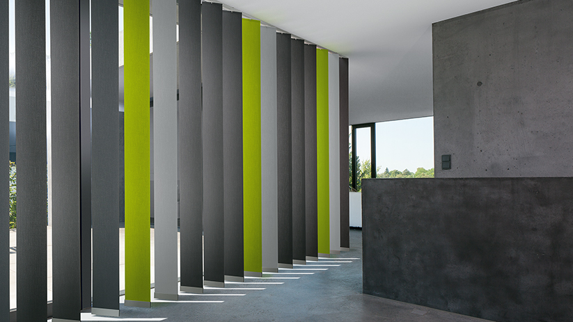 Ist leistungsfähige Lichtmodulation am Fenster gewünscht, sind Vertikal-Jalousien die richtige Wahl bei der Planung Ihres Projekts. Je nach Sonnenstand erlaubt die Bedienung des Behangs, der aus einzelnen Lamellen besteht, eine optimale Licht- und Sichtregulierung. Dank Perlex- oder anderen Funktionsbeschichtungen auf der Rückseite der Lamelle können einfallende Lichtstrahlen wirkungsvoll reflektiert werden und damit einen hervorragenden Sicht- und Blendschutz in der modernen Kommunikations- und Arbeitswelt und speziell an Bildschirmarbeitsplätzen bieten. Für anspruchsvolle Architektur, große Fensterflächen, Türen, Oberlichter, viele Sonderformen und als Raumteiler sind sie die ideale Lösung, wenn es um eine wirkungsvolle, zweckorientierte und ästhetische Beschattung geht. Außerdem lassen sich mit den einzelnen Lamellen gekonnt Akzente, Kontraste oder Farbverläufe – passend zur jeweiligen Stilrichtung im Raum – konzipieren. Vertikal-Jalousien regulieren die Lichtverhältnisse in feinsten Abstufungen je nach gewünschtem Wirkungsgrad und sind damit besonders flexibel einsetzbar.